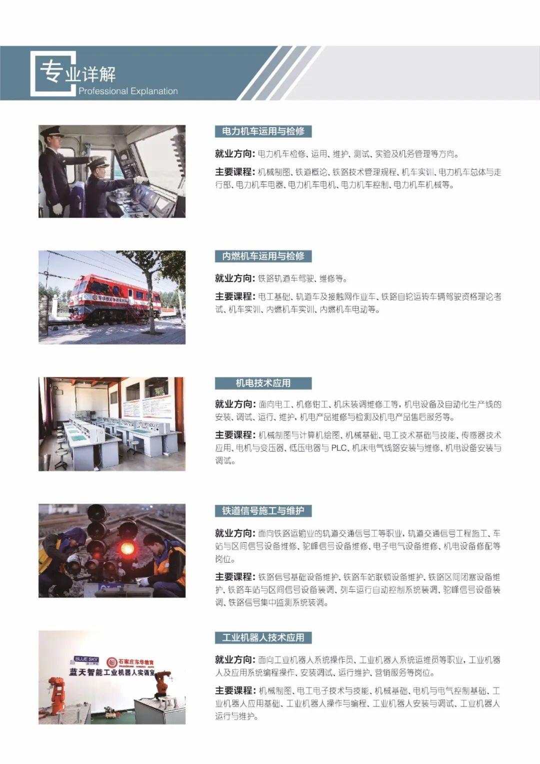 温馨提示:河北升学网是省内一站式升学服务平台,本页面从互联网或石家庄东华铁路学校官网整理了有关石家庄东华铁路学校的招生简章、招生专业、学校简介、学校收费标准等信息,为考生了解石家庄东华铁路学校提供全方位信息参考,轻松选择到自己心仪的职业学校。